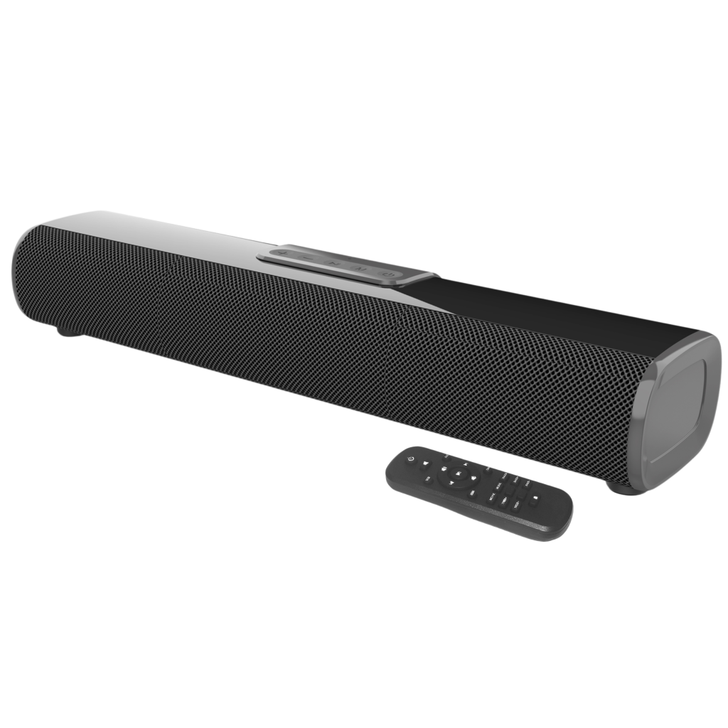 De soundbar beschikt over twee 2,25″ aluminium conusdrivers en dubbele 4″ high-output papieren woofers, die indrukwekkende bas bieden zonder een externe subwoofer. Met een totaal vermogen van 100W RMS biedt hij helder en dynamisch geluid.